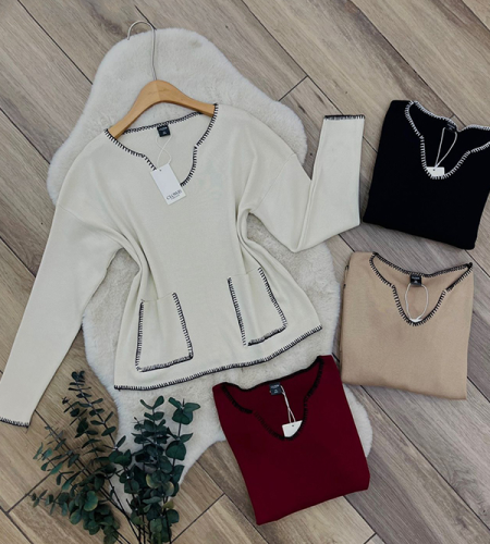 CARDIGAN C/DETALLES HILOS FINOS - BLANCO, NEGRO, CAMEL, VINO - UNITALLA