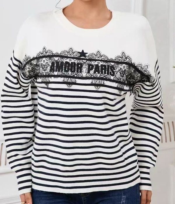 CARDIGAN DE PUNTO DETALLE RAYAS Y ENCAJE ¨AMOUR PARIS¨-VARIOS COLORES-UNITALLA
