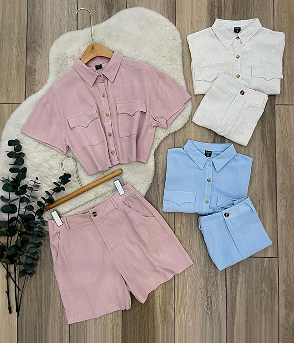 CONJUNTO 2 PIEZAS,CAMISA MANGA CORTA CROP Y PANTS CORTO