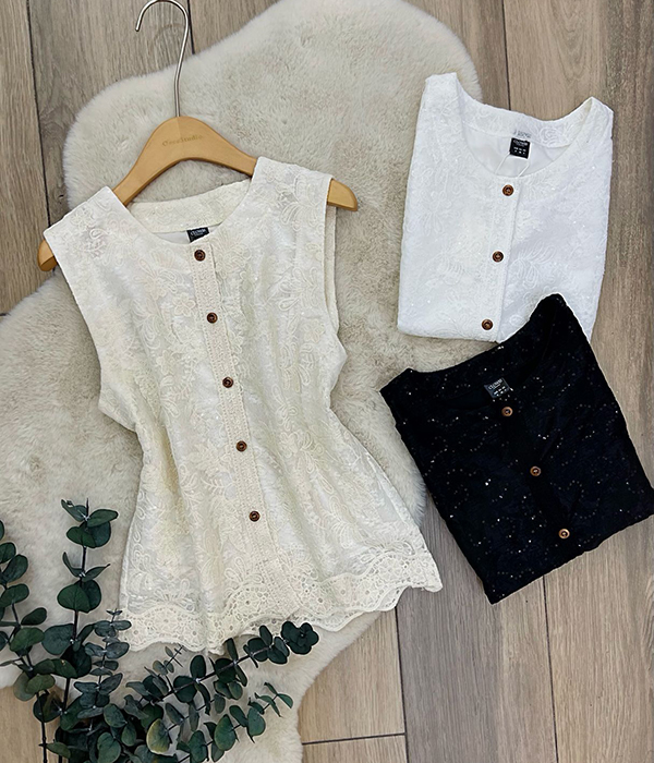 BLUSA LARGA SIN MANGAS DE ENCAJE - BLANCO, NEGRO,  HUESO - S/M/L